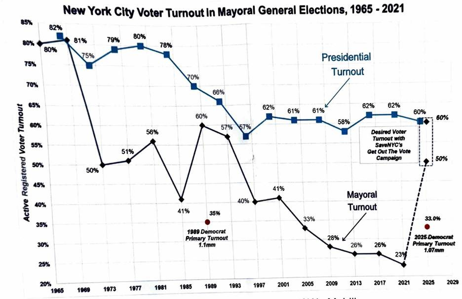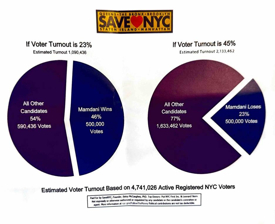 If voter turnout is consistent with prior years, Mamdani wins. If voter turnout is 45% then both Sliwa and Cuomo could outperform Mamdani. The math is simple, and if voters are made aware of the consequence of a Mamdani victory, then more everyday New Yorkers will turn out to vote.